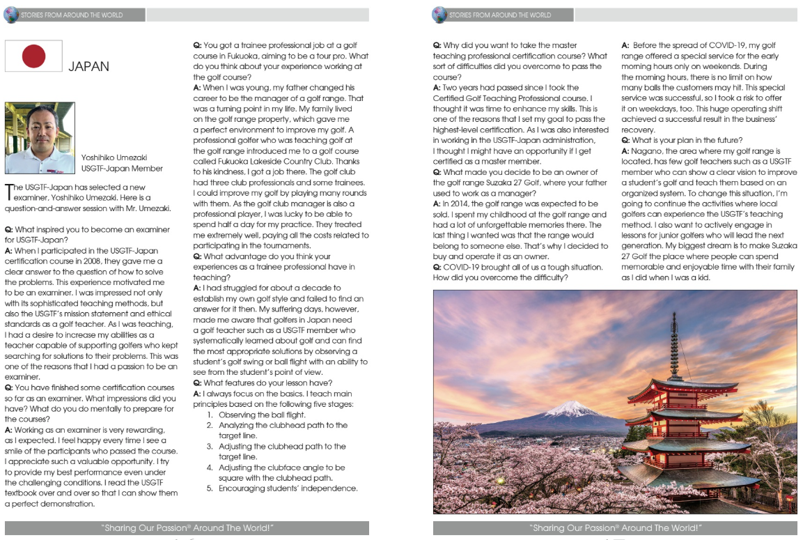 - 全米ゴルフ指導者連盟発行が発行する「Golf Teaching Pro」という雑誌2023年冬号、「ゴルフを教えることを学ぶ...生涯の職業」の掲載されました。